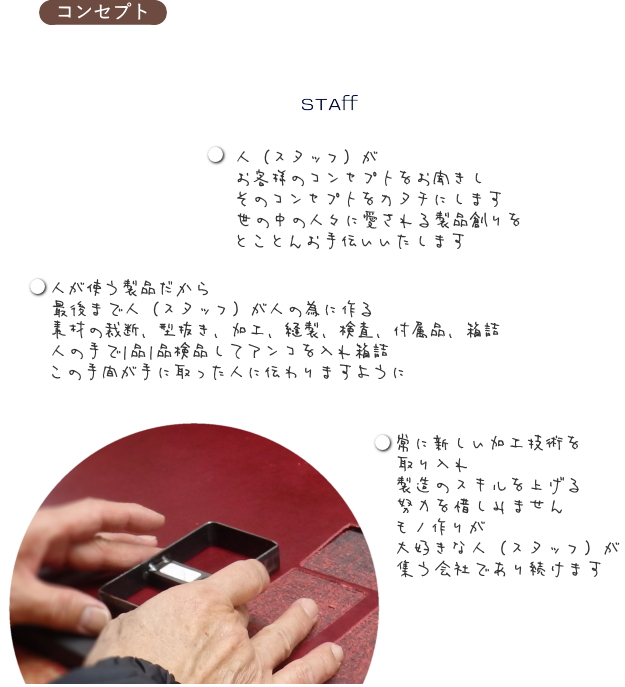 袋物製品製造のワークをご提供し、お客様の商品企画・コンセプトを